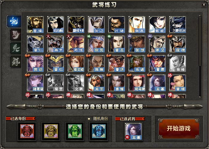 4. 将武将练习中选将SP页签高度调高,去除“特殊”武将页签;