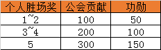 3、公会积分个人奖励:根据全公会的积分总数,公会内每个参与公会争霸战并取得1胜及以上的玩家均可获得,以信件形式自动发奖;