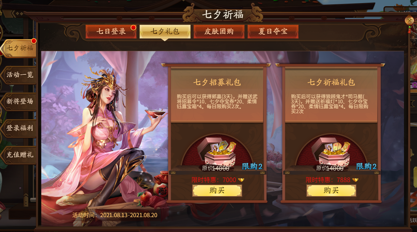 [十周年]8.13-8.20 七夕祈福 新将杨婉 蔡夫人&杨婉动态 八日登录福利 祈福助力